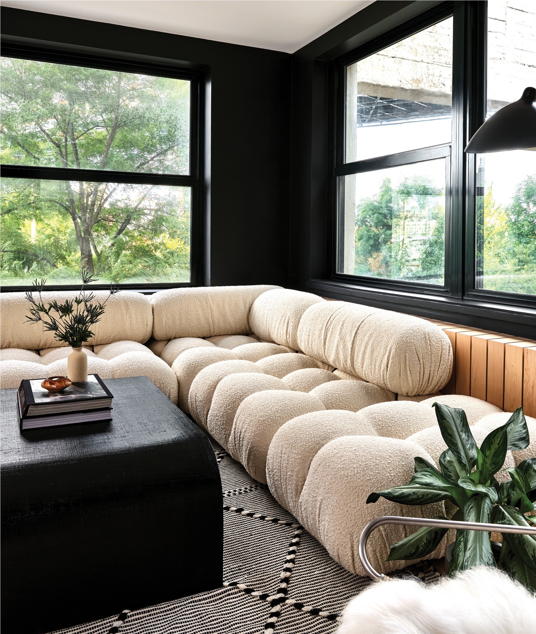 INTERIOR LIVING AREA PG 33: Sofa by Six Penny, sixpenny.com. Cocktail table from Clubcu, clubcu.com.