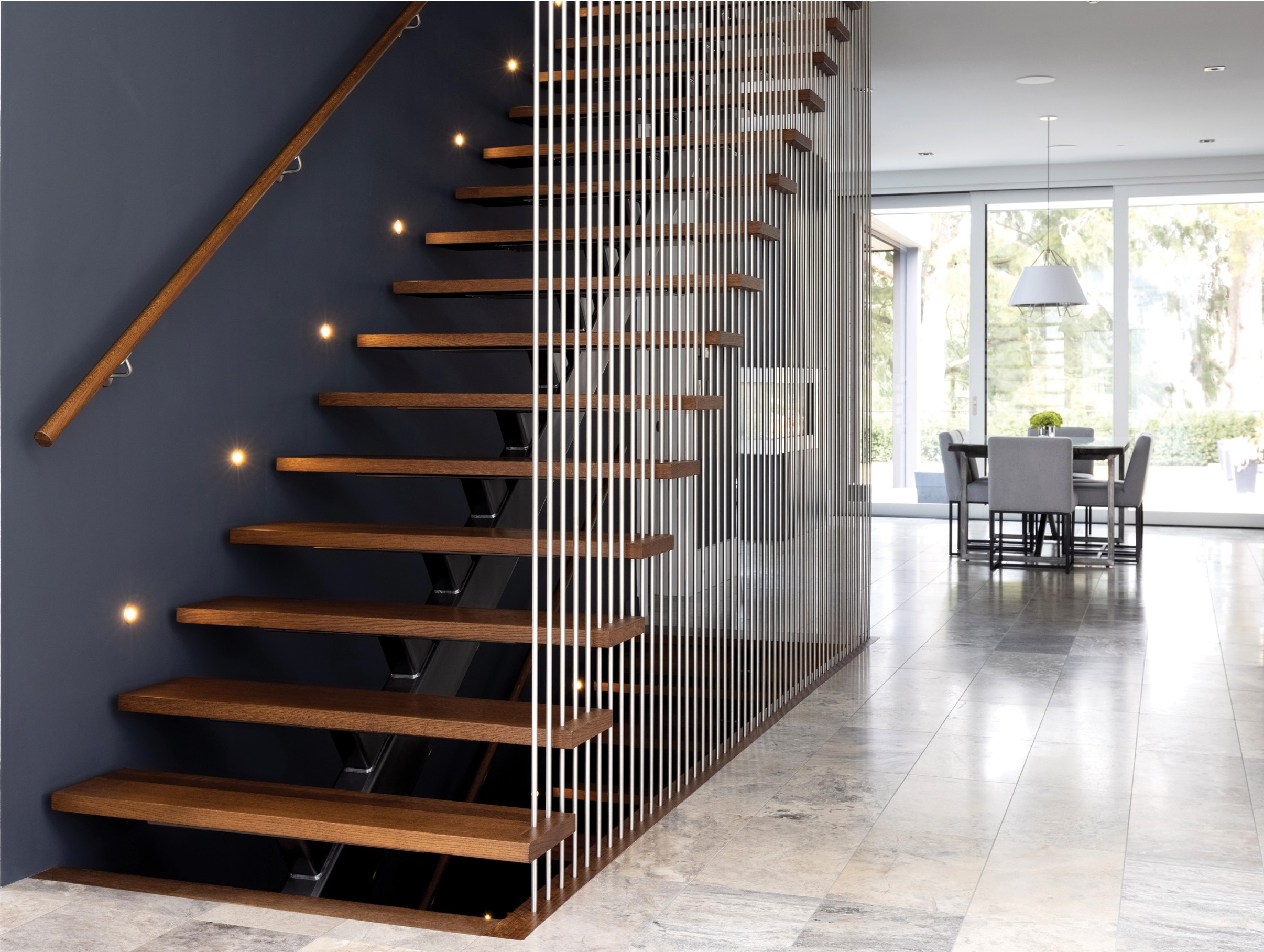 ENTRY PG 33: Stairwell railing by South Florida Stairs, southfloridastairs.com. Flooring throughout by EuroOak in St. Tropez.