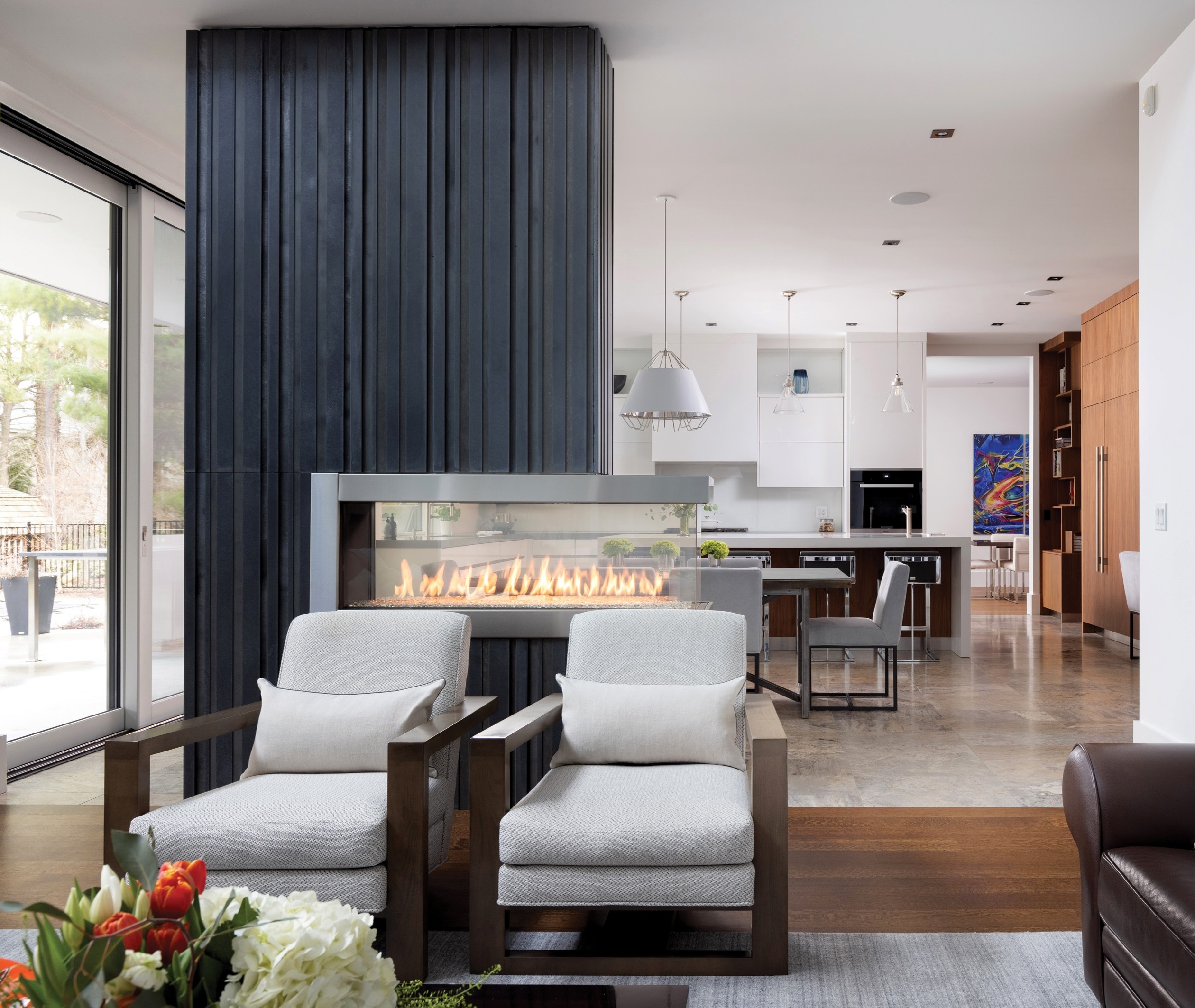 FIRESIDE PG 17: Chair by Lee Industries, leeindustries.com. Table by Noir Furniture, noirfurniturela.com.