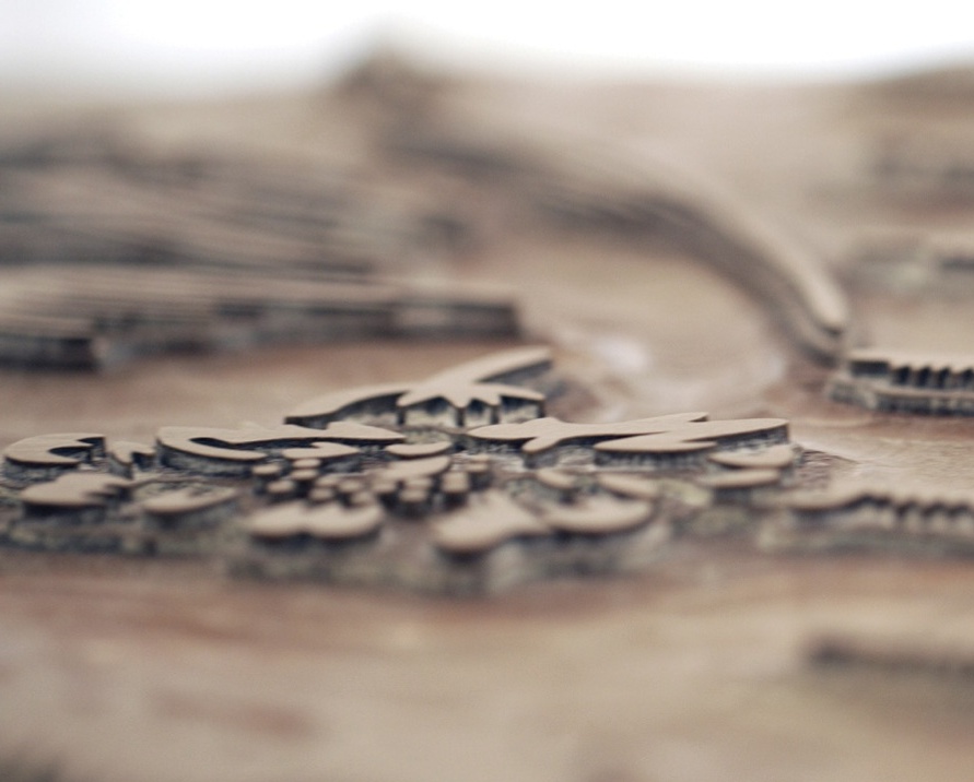 Adelphi applies patterns via carved blocks, pressing and drying repeatedly to layer shapes and colors.