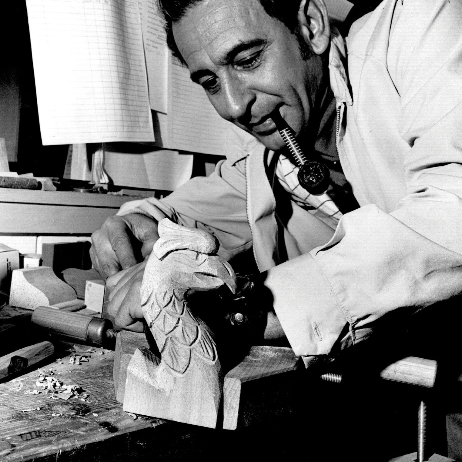 A carpenter hand-carves a figure for the Haunted Mansion at Walt Disney World in 1970.