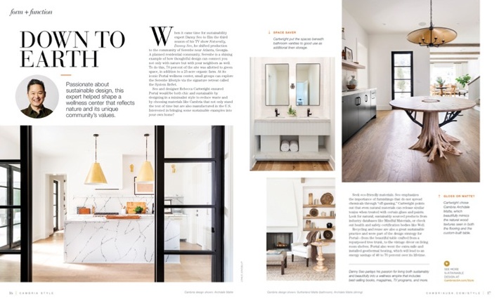 Seo and designer Rebecca Cartwright ensured Portal would be both chic and sustainable by designing in a minimalist style to reduce waste and by choosing materials like Cambria that not only stand the test of time but are also manufactured in the U.S. Interested in bringing some sustainable examples into your own home?