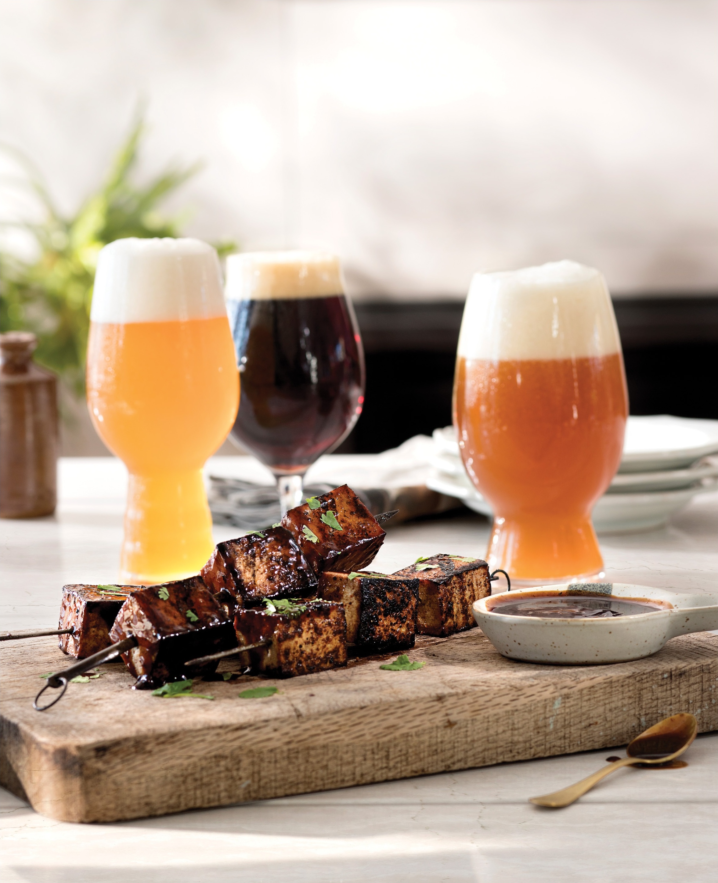 HOPPY SUMMER PAIRINGS PG 59: Beer glass set from Keg Works, kegworks.com. Stoneware tapas dipping sauce dish and crock from Rolling Greens, rghomeandgarden.com. Medium Japanese Joli flower plates from The Foundry Home Goods, thefoundryhomegoods.com.