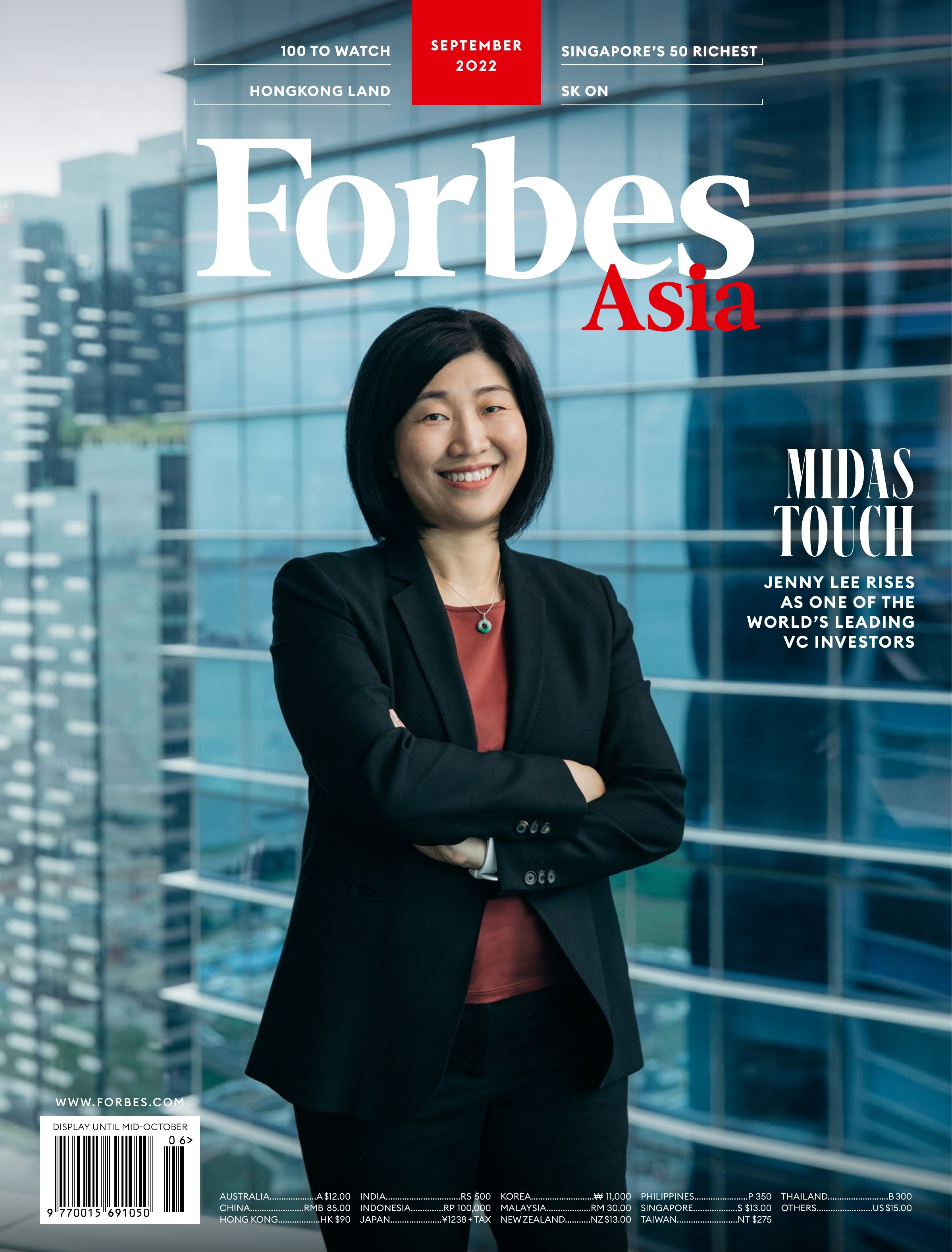 CHUA: NICKY LOH FOR FORBES ASIA. COVER CREDIT JENNY LEE : Photograph by Juliana Tan for Forbes Asia. GATES: JASON BELL, YENBAMROONG: COURTESY OF MU SPACE, DONG-SEOB: COURTESY OF SK ON, WONG: KEN WU FOR FORBES ASIA